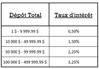 Veuillez noter que ce tableau n'est qu'un exemple. Les montants ainsi que les taux d'intérêt peuvent varier au moment où vous lisez cet article.